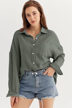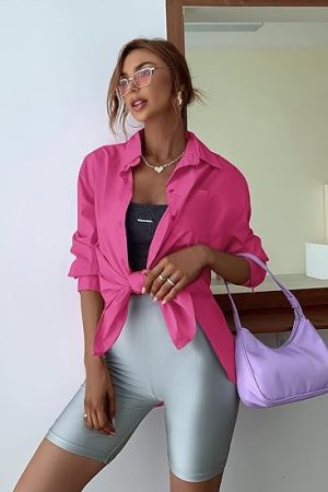 Down Shirts Boyfriend Long Sleeve Oversized Blouses Tops