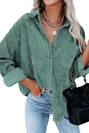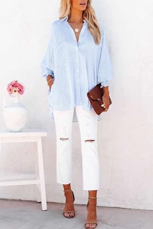Long Sleeve Button Down Drop Shoulder Causal Blouse Tops