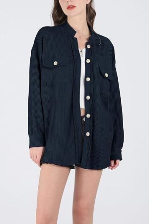 Sleeve Button Down Shirts Jacket Coats with Side Pockets