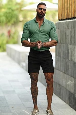 Slim Fit Stretch Long Short Sleeve Casual Button Down Shirt