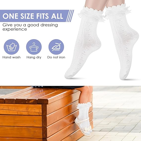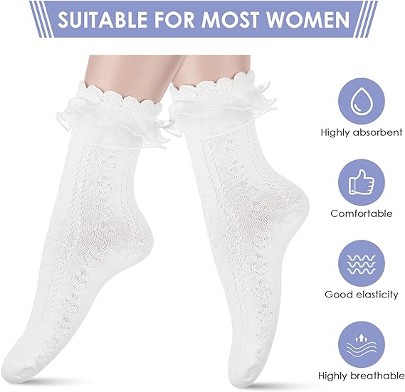 • Princess Dress Socks:High frilly sock is suitable for any type of women shoes,flats and high heels,sneakers and loafers.Breathable socks reduce pressure on foot arch, ensure stability of sole support