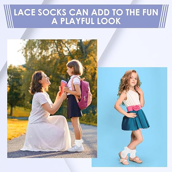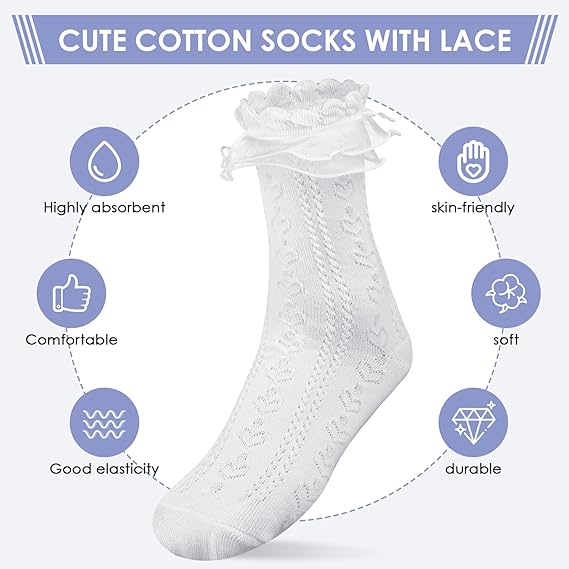 • Cute Ruffle Socks:Frilly lace socks are made of soft and stretchy cotton.Ankle socks is breathable and provides a cool comfort to wrap your feet, preventing stuffiness and keeping your feet dry