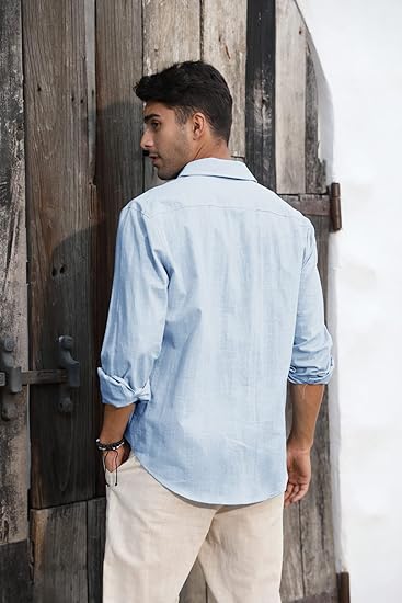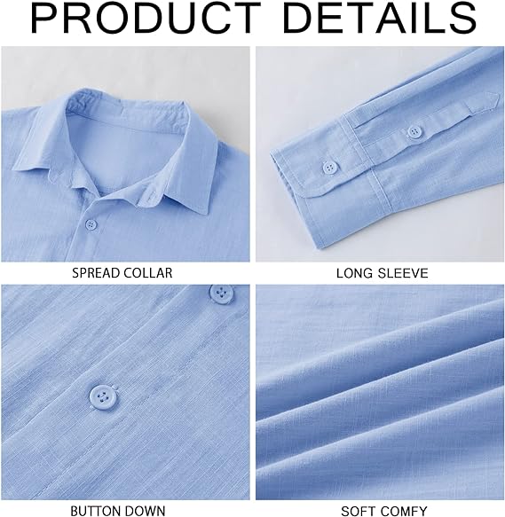 【FEATURES】: Beach shirt for men, linen cotton, long sleeve, button down t shirt, spread collar, lightweight, slim fit, solid color. Make You Beautiful, Fashionable, Attractive.