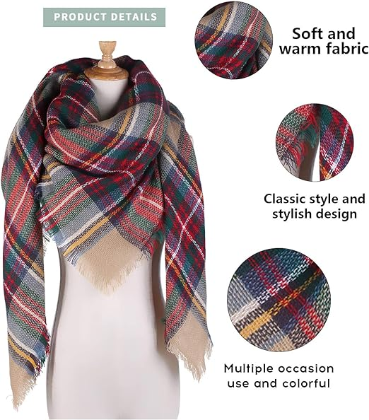 - Our plaid checked scarf shawls are very fashion and stylish. And the colors are very stylish and go with all winter cords, sweaters and coats. Easy to wear and pair with any of your outfits. Our blanket scarves looks luxurious and fashionable, which will make a good gift for your lover, family, friend or coworkers.